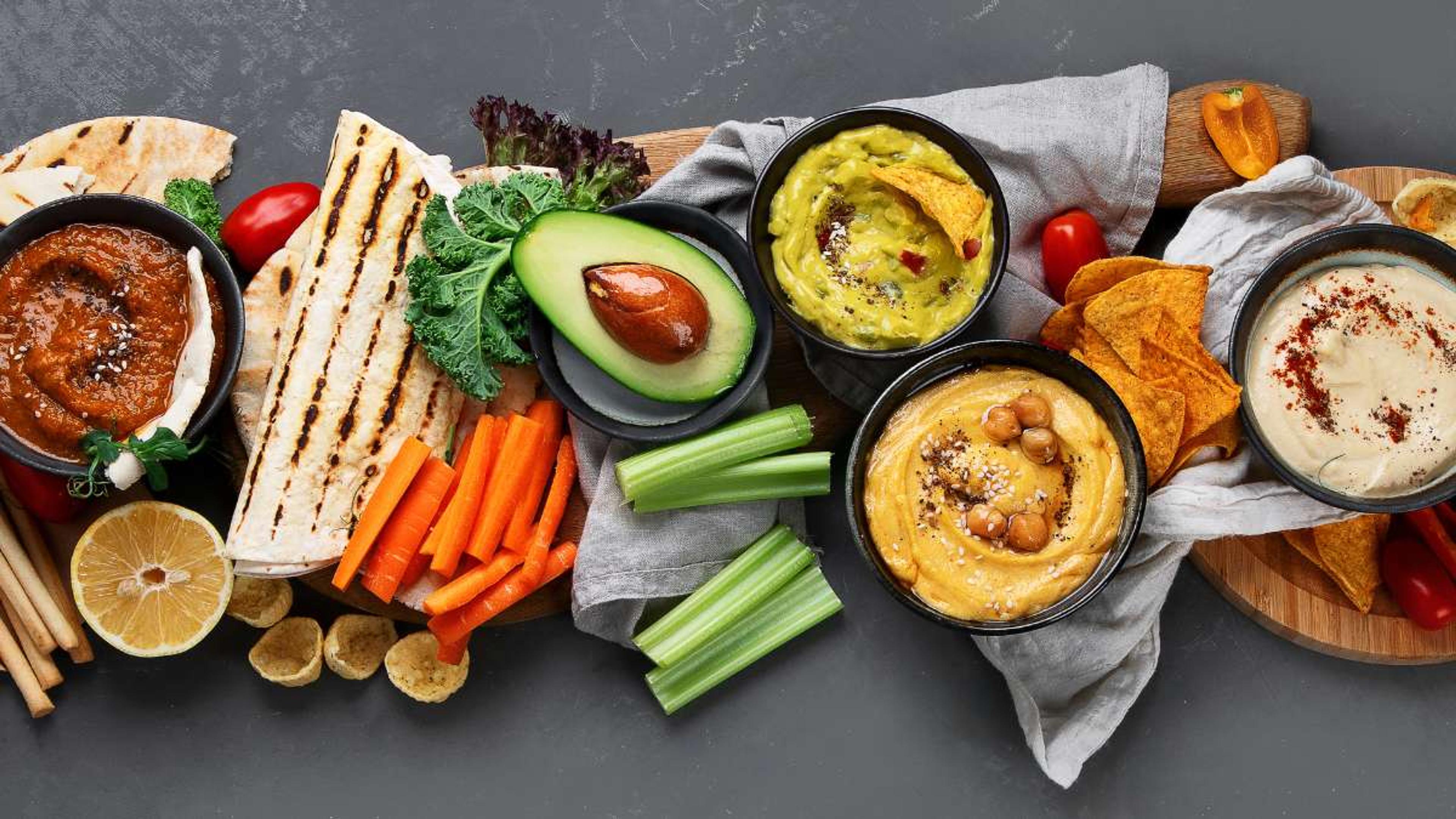 - Traditional hummus made with chickpeas, lemon juice, salt, tahini, and garlic is vegan.